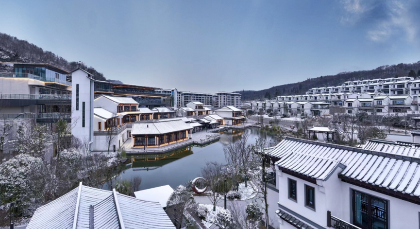 作为重庆武隆仙女山高品质的文旅小镇项目,“仙山里”一直以来致力于为客户营造不一样的生活体系,打造出小镇食堂、诗意书院、颐乐学院、露营基地等配套。作为蓝城和文投联袂打造的山水旅居美学的典范之作,文投蓝城·仙山里立足于传统审美,寻觅与仙女山自然的契合,展现出“寓古于新”的韵味,以“现代形、东方意”为理念,强调自然景观与建筑环境的融会贯通,以白墙青瓦、飞檐翘角,亭榭楼台等江南式湖畔园林街巷建筑,一展江南无限的诗情画意。